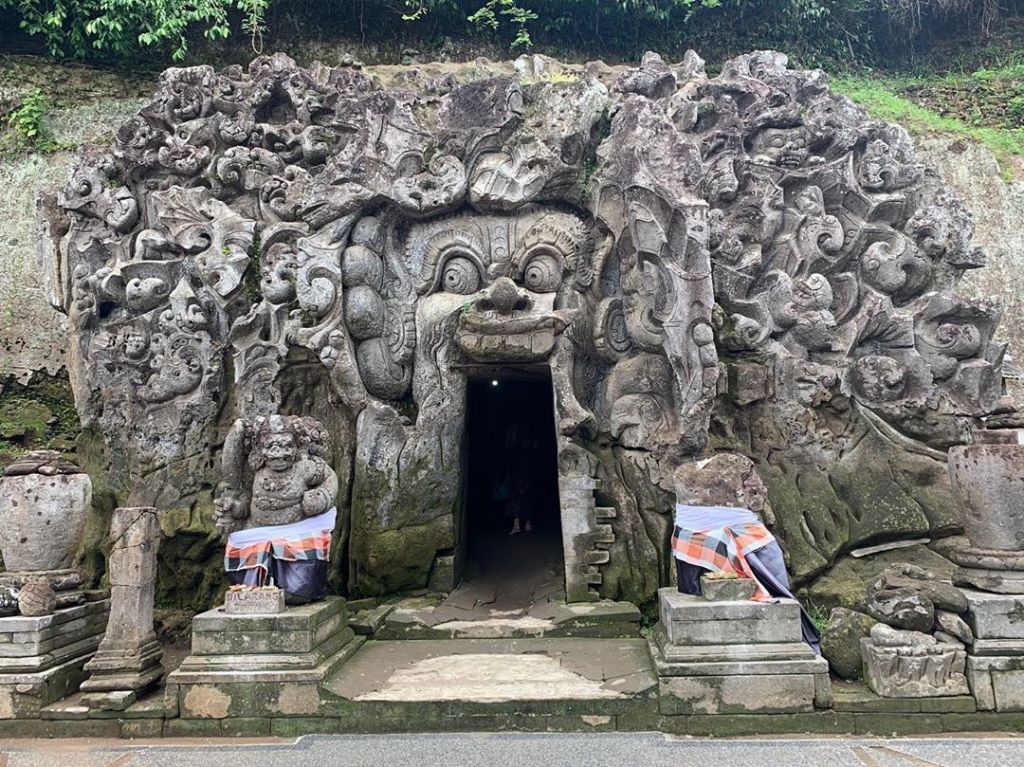 apparently translates as ‘Elephant Cave’, however, there are no elephants to be seen. Goa Gajah dates back to the 11th century, built as a spiritual place for meditation. The main grounds are down a flight of steps from the roadside and parking area, which is lined with various art and souvenir shops and refreshment kiosks.