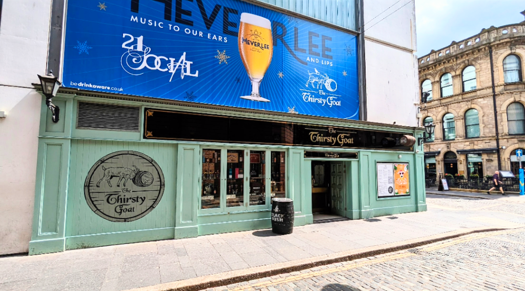 Located at 1 Hill Street, The Thirsty Goat offers pub food and drinks within a relaxed atmosphere often with a live band at weekends.