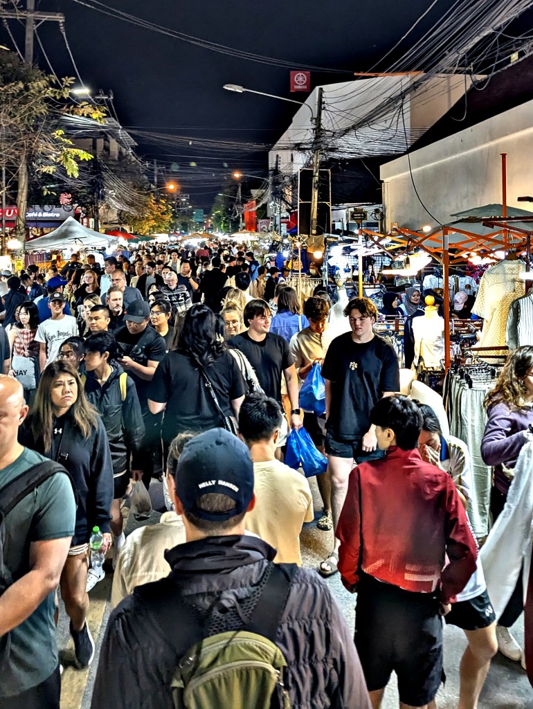 Sunday Night Bazaar Market – This runs the entire length of the old city roads. It starts at Wat Prah Singh temple the whole length of Rachadamnoen Road to Tha Phae Gate. The road closes off at 4pm and the market runs until midnight. It’s a hive of activity were you can purchase everything from leather goods, to clothes, souvenirs to food. It’s a great place to purchase those Thai elephant trousers for the temples if you’ve forgotten to pack them. Have your cash ready. You’ll no doubt spent a lot here (I did!)