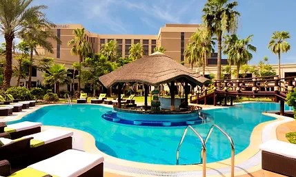 The hotelโs two glittering twin towers are among the most recognisable landmarks in Dubai: This amazing hotel has two iconic 45 storey towers and features over 700 rooms, suites and apartments. Its location is ideal for tourist and business travellers who also get to experience the beach, gold clubs, Dubai Internet City, Media City and several shopping malls in the proximity.