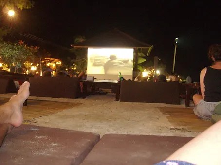 Once the sun sets at various points along the beach you will find open air cinemas. Films are projected onto a screen with bean bags to sit on. Most of the places are free, but the movie on the beach at Pearl Beach Lounge costs 50,000IDR (GBยฃ2.85).