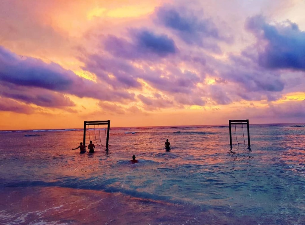 All along the West side of Gili T you will find swings in the Ocean. Make sure you allow time for one of these shots!