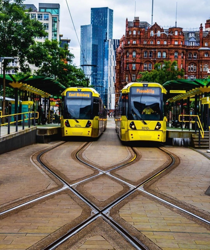 โน๏ธ TRAVEL: Manchester is served well by Air, Road, Train and by the City’s Tram (Metro) network. From Manchester Airport train station (located between Terminals 1 and 2) โyou can access the city centre via train that arrives into Manchester Piccadilly costing around ยฃ4.30, or via the METRO (Tram- The equivalent of the London Underground) that runs the 7 miles from the airport into the city centre.โ