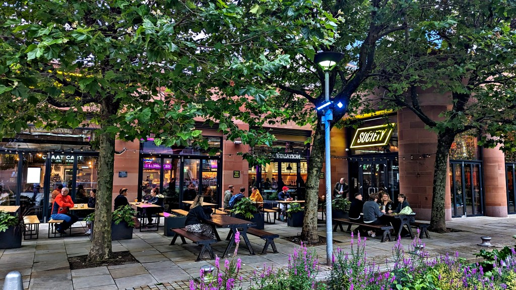 This is a lovely basement area serving independent kitchen food and drinks in a very relaxed atmosphere. Located at Barbirolli Square opposite the Bridgewater Hall. It does become rather busy especially weekends and post-work drinks.