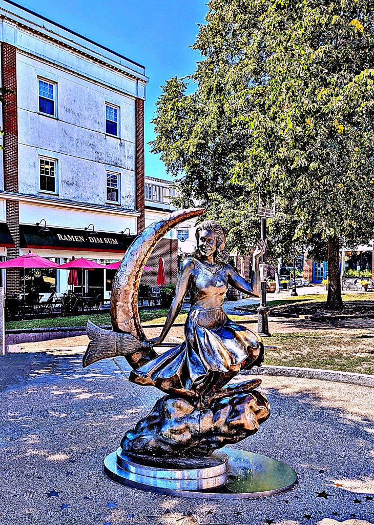 The Bewitched Statue is a prominent landmark commemorating the famous 1960s television show ‘Bewitched’ that was set in the fictional town of Westbridge but had strong ties to Salem. The statue features the character Samantha Stephens played by actress Elizabeth Montgomery, who was a good natured witch married to a mortal.