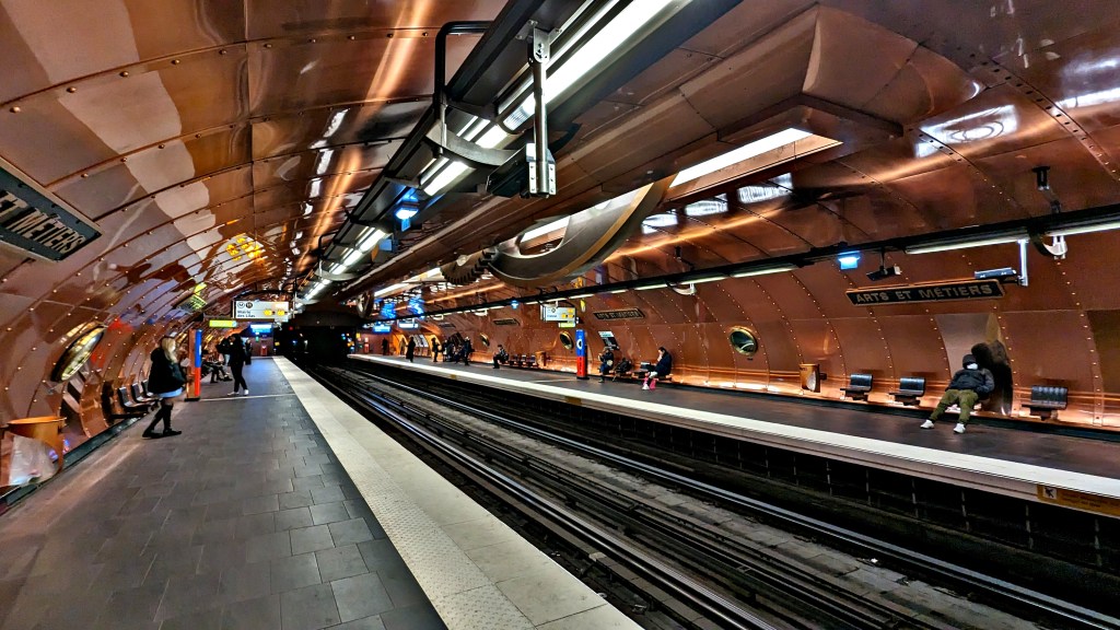 I visited Arts et Metiers for one thing – to view the most amazing Metro station ever! Think 20,000 leagues under the sea. Hop on the Metro to ‘Art et Metiers’.