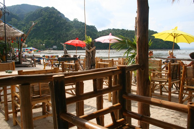 Monkey Beach Bar is located on Loh Dalam beach, facing the beautiful rocky peaks bathed in the turquoise waters of the Andaman Sea. The bar is entirely built in bamboo, right on the sand. Reggae music (not too loud) creates a relaxing atmosphere. Let yourself be tempted by some of the best fruit shakes on the island.