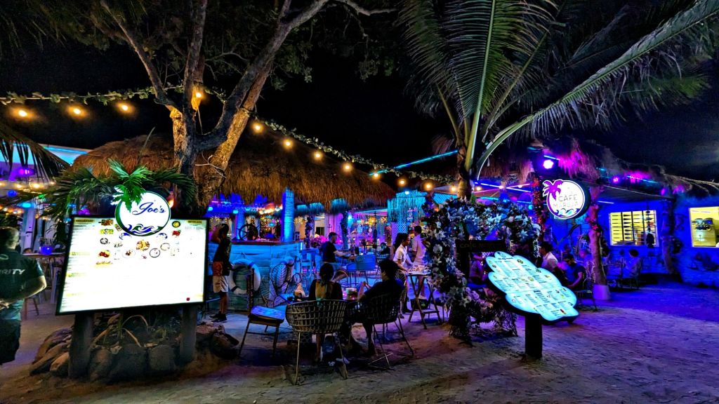 Located at Casa Pilar Beach Resort Joe’s offers great food and drinks with comfy seating, often with a live band playing. It’s a great place to relax especially of an evening under the canopy of colourful lights.