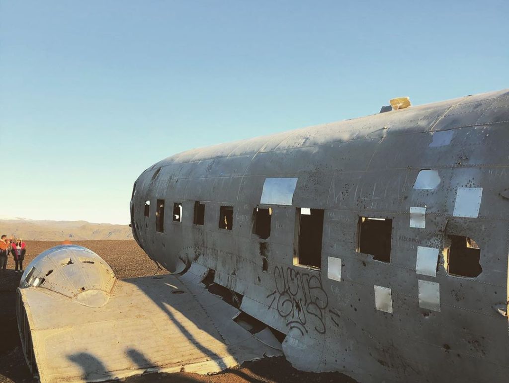 The Sรณlheimasandur plane wreckage is a famous site in Iceland where a plane crashed in November 1973. The US Navy airplane – a Douglas Super DC-3 – was forced to crash land on Sรณlheimasandur beach. The crew all survived the impact but the plane was abandoned and still lies there after four decades.
