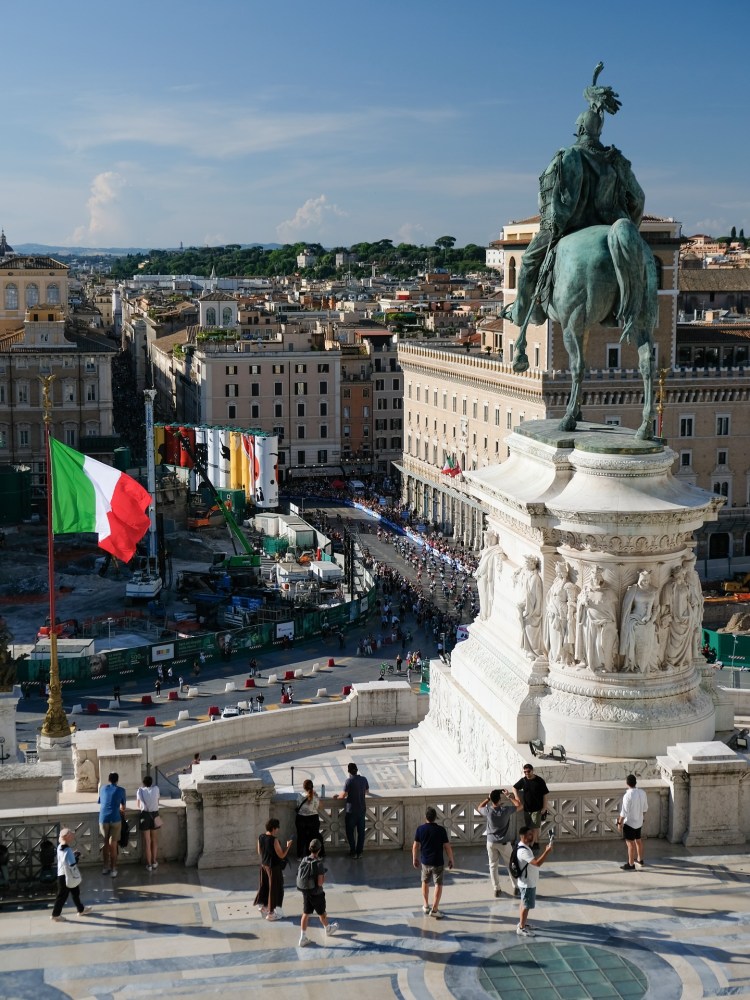You can walk up the steps and inside the Building. It’s free to enter. Here you will be rewarded with panoramic views over Rome, and if after all this walking your feet begin to tire, there is a small bistro at the top which offer surprisingly reasonable priced food and beverages.