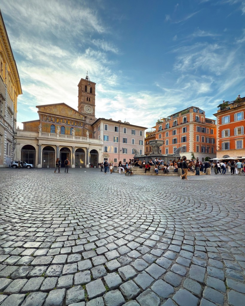You can hail a cab at the cost of €18 to ‘Piazza Santa Maria’ (above) which is a beautiful little square rimmed with restaurants and a church, or like myself, caught the Metro Line B to Piramide station (aptly named as there is a pyramid monument outside the station), then walk 10 minutes over the river.