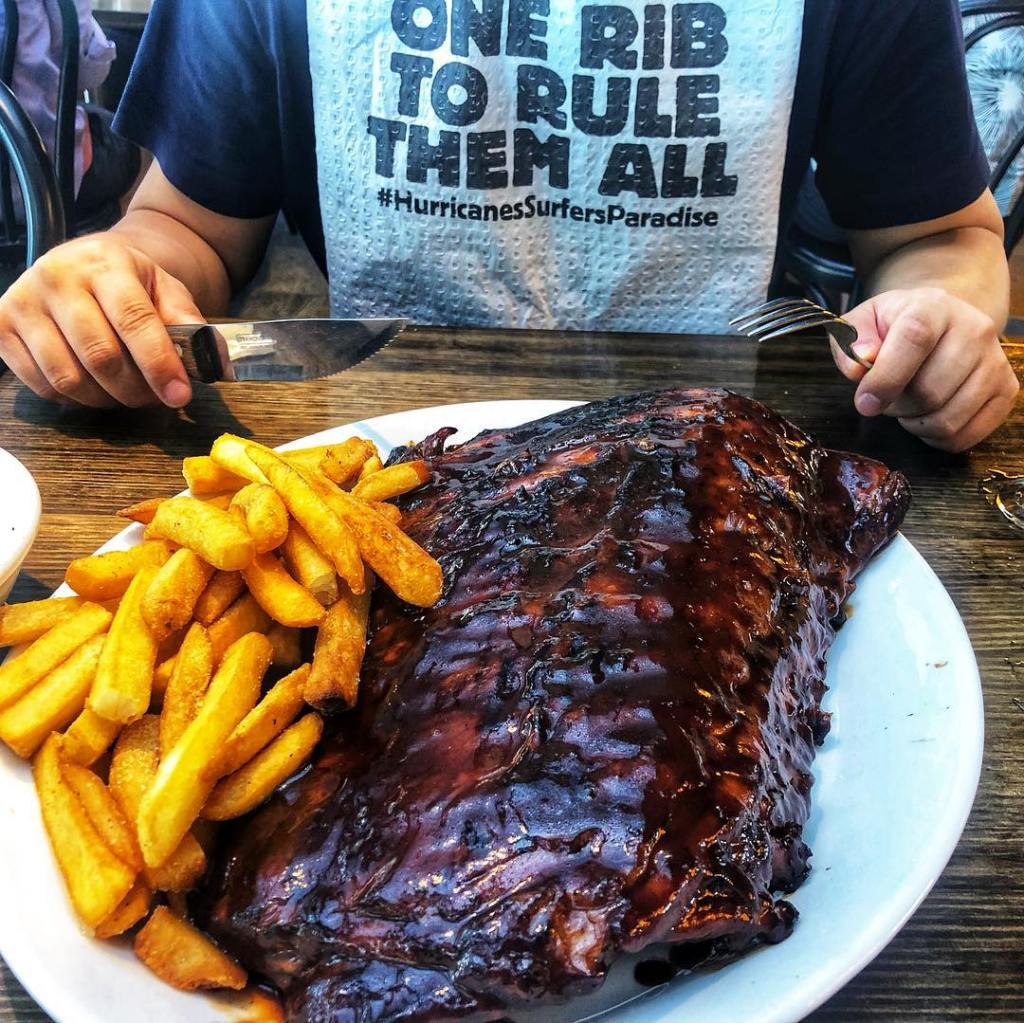 The main food is ribs- a full rack of them! The meal even comes with a bib to keep you clean! Hurricane Bar and Grill is located on the 1st floor of Soul Boardwalk near the Surfers Paradise beach sign.