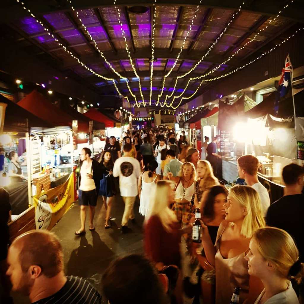 Located on Hillcrest Parade, 15 minutes walk from where I was staying is an awesome venue called Miami Marketta. Peruse the food stalls lined with fairy lights in this Miami suburb, where youโll be able to sample just about every type of food you want. Thereโs a nice bar to stop for a cocktail and other stalls sell clothing and artwork. Live music takes place at the venue entrance.
