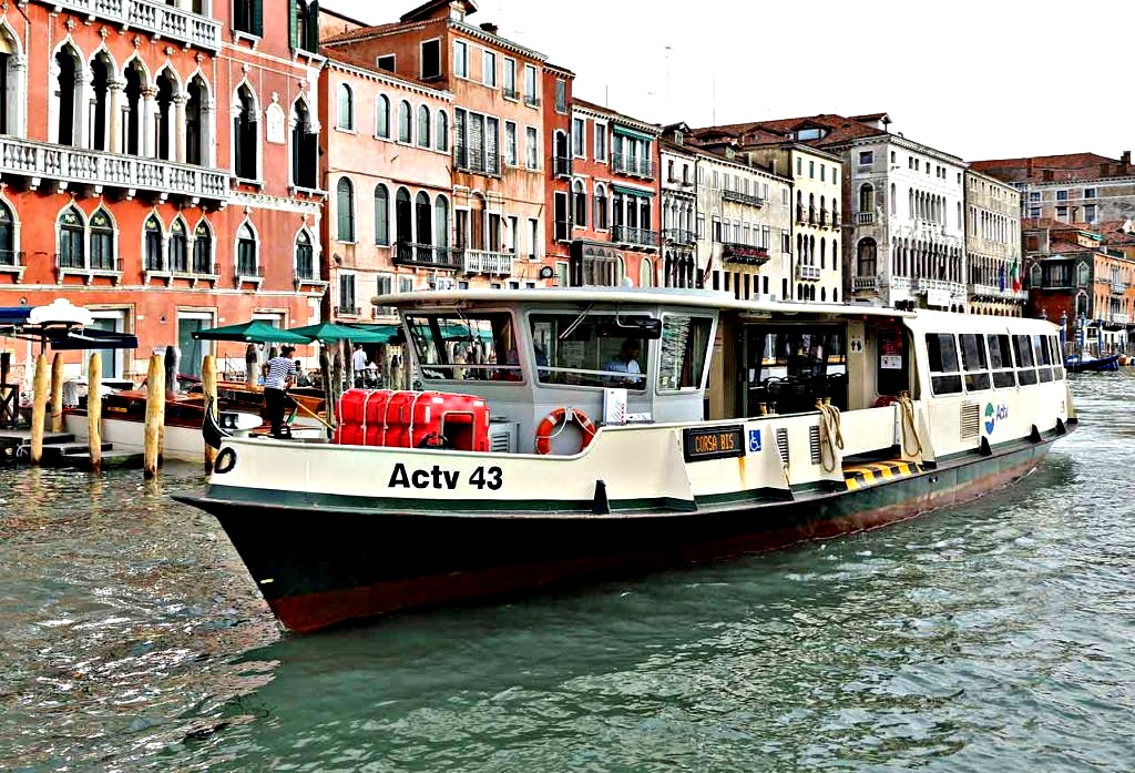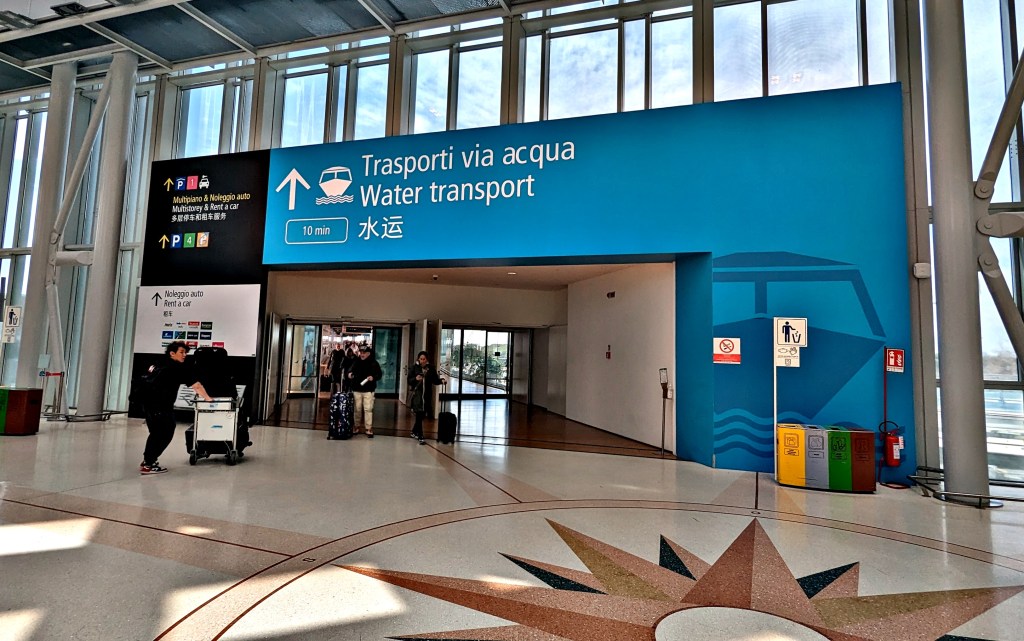 WATER BUS: In the arrivals hall follow signs for the water taxi terminal. Tickets cost โฌ15 (GB13). At the water terminal make your way to Pier 12 (Orange Line). The Water bus takes around 50 minutes and will drop passengers off at various stops along the Grand Canal.