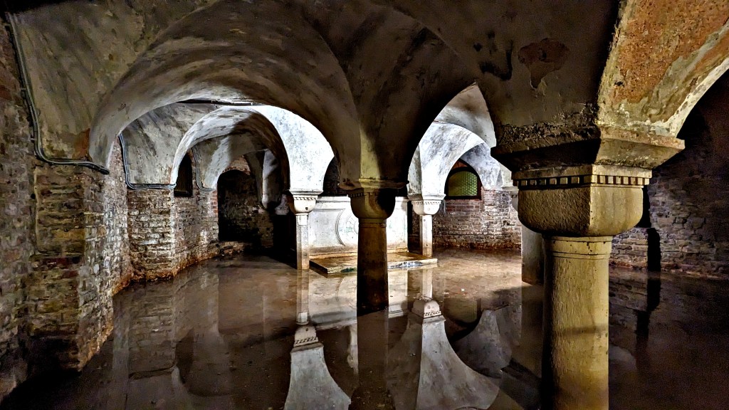 Established in the 15th Century San Zaccaria church is a beautifully ornate church whose crypt has filled with the waters of the surrounding canals. The burial basement features columns and vaulted ceilings indicative of that time. To access the crypt enter San Zaccaria church were you will find a small ticket kiosk. Tickets are โฌ3 (GB2.60).
