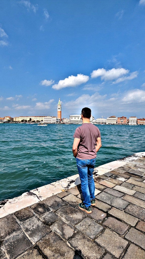 To get to San Giorgio catch the Vaparetto from Pontoon B located at the waterfront outside Doges Palace using the red number 2 line. A ticket costs โฌ9 (GBยฃ7.90) giving you 75 minutes of unlimited travel. After this time you will need to purchase another ticket. I caught a water bus to the island and stopped for a coffee at San Giorgio Cafe before heading back to catch the next water bus to the adjacent island.